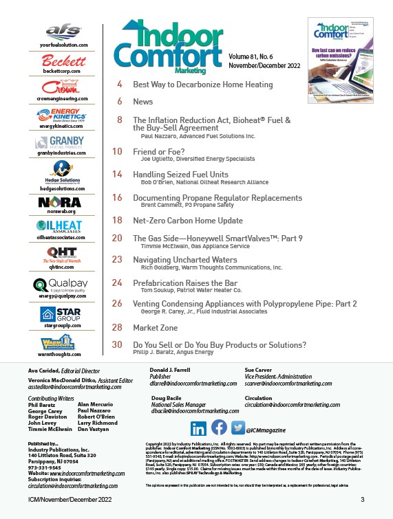 publisher. Indoor Comfort Marketing (ISSN No. 1092-6003) is published bimonthly by Industry Publications, Inc. Address all correspondence